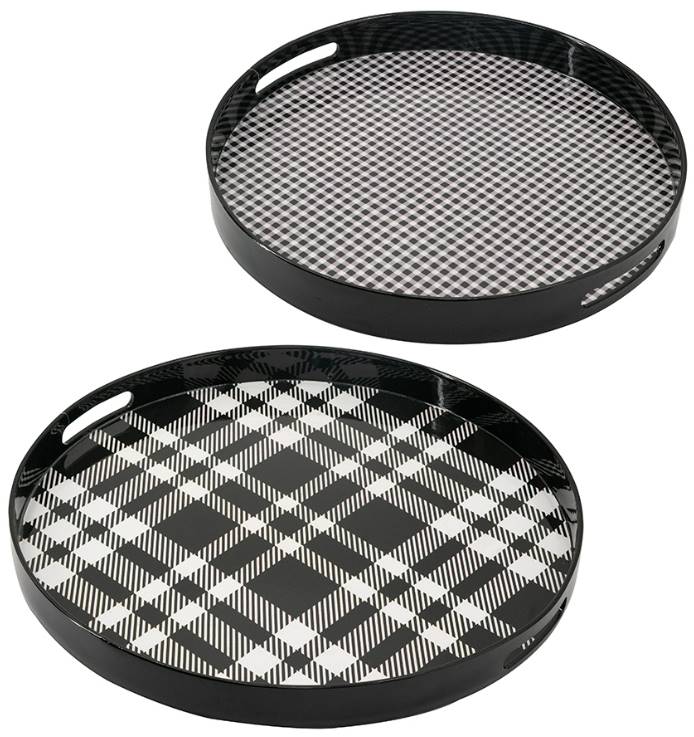 This stylish round decorative tray features a black and gray plaid motif perfect for giving a soft look to any modern home. A throwback favorite with elegance, this tray set is made from plastic with a high rim reminiscent of classic vintage advertising trays.Read More