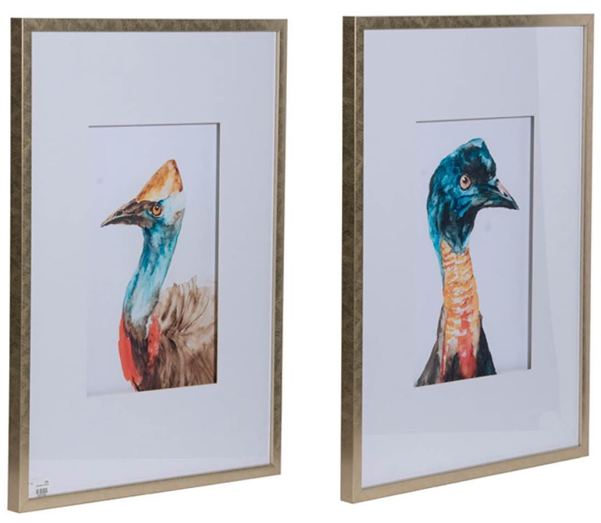 Bring a bold look to your home or office with this intense pair of cassowary prints. These prints capture the unique drama of this colorful, tropical bird. With vibrant shades of blue, coral, and red, these prints combine bright colors with the powerful look of these unusual creatures.Read More
