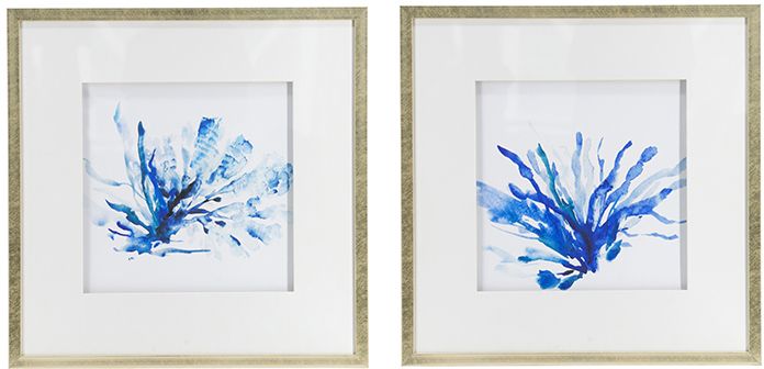 Bring a splash of color to your walls with this set of two framed coral wall art. The bold nautical print on a white background is framed beautifully in gold. The set is ready to hang.