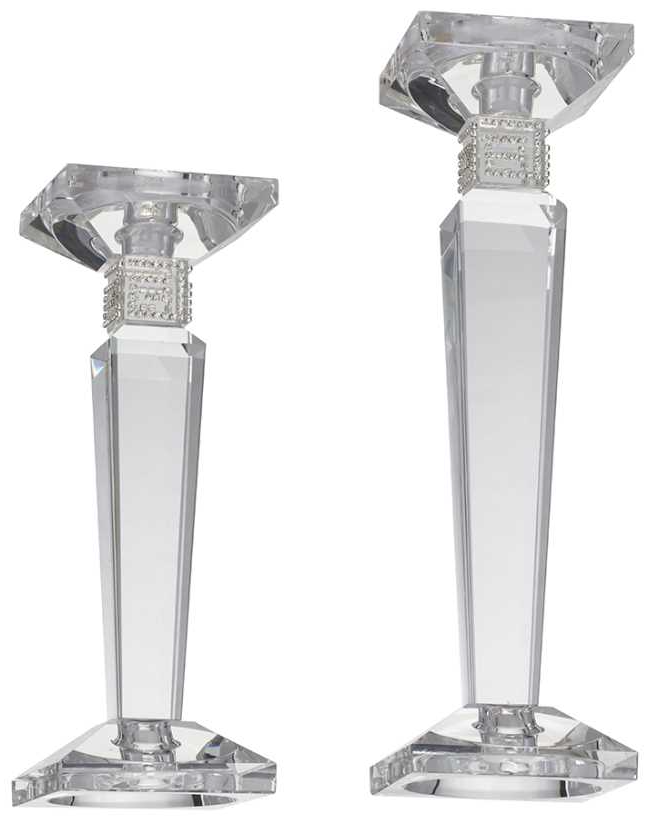 These contemporary glass candle holders are functional works of art, every detail crisp and defined for a bold look despite their minimalistic composition. Use as part of a centerpiece design or display anywhere in the home for elegant mood lighting. Each set includes two matching candle holders.Read More