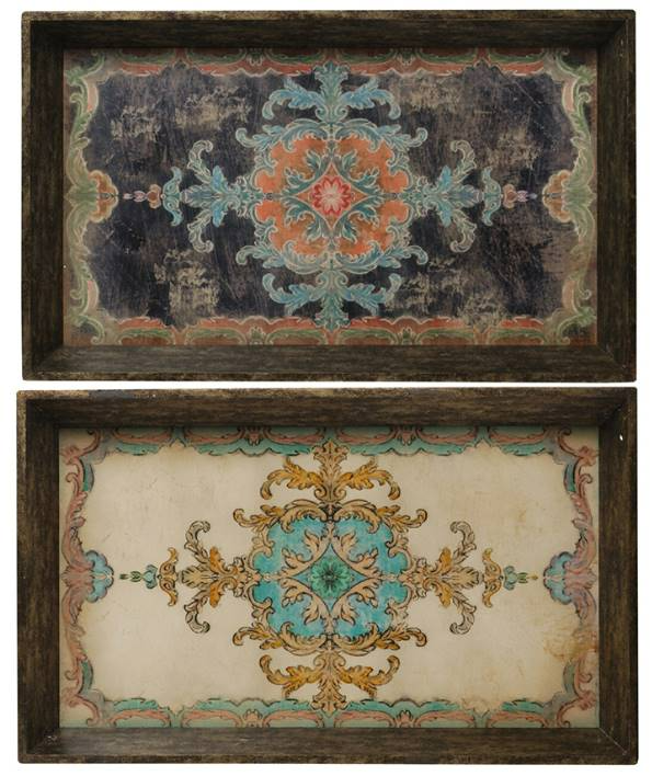 Enjoy the elegant design of the set of two wooden trays in any room of your home, from the kitchen to the home office. These rectangle wood trays serve nicely on a desk, cocktail table, or nightstand and are fine display pieces for candy, and potpourri – the possibilities are endless!Read More