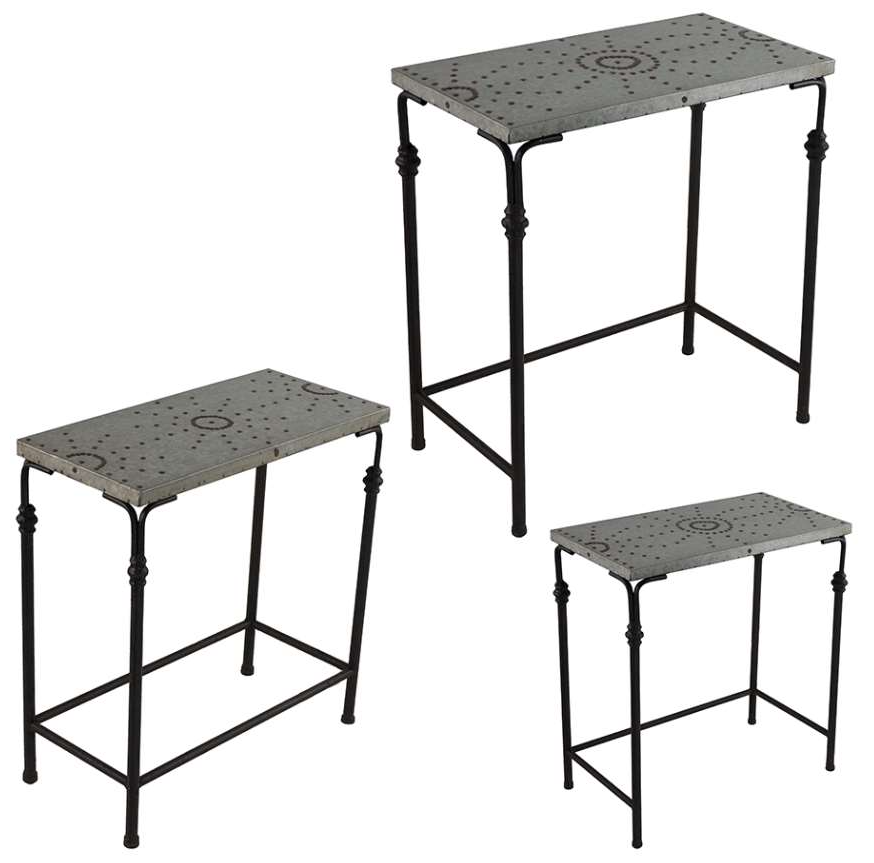 Whether as an entryway piece or a functional side tables the Gilbert nesting tables will always be a welcome addition to any home. These nesting tables feature a galvanized metal top with iron metal base and are great as plant stands in your home or covered patio.Read More