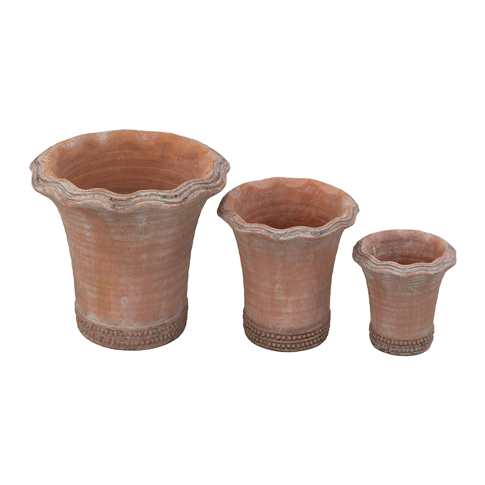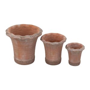 The 3-piece brown planters are a charming trio for your garden. Crafted in a warm brown tone, these planters exude earthy elegance. With three different sizes, they offer versatility for displaying a variety of plants, adding natural beauty to your outdoor space.Read More
