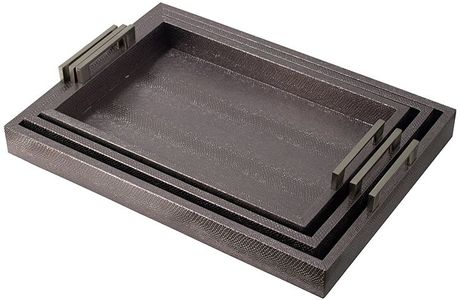 This decorative nesting tray trio features three stylish metal and MDF trays with a unique transitional look. Crafted from high quality materials with a flannel accent for a soft touch, it’s a wonderful way to give a new feel to tables in living rooms, dining rooms, and much more. Add this set of 3 to anywhere that needs a little extra style.