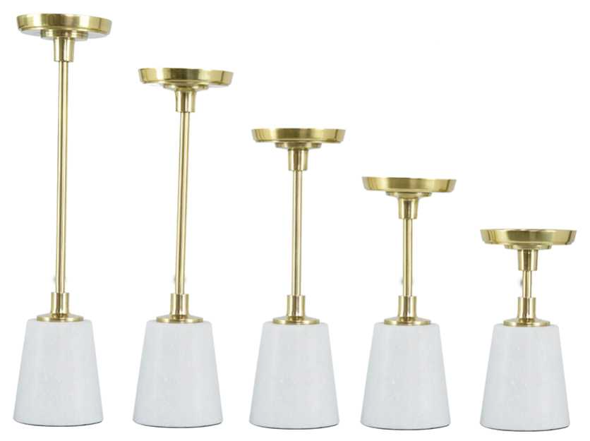 This elegantly modern set of white marble and gold-finished aluminum candleholders will light up any room. The vibrant two-toned colorway allows this set to complement modern, glam, Art Deco, and eclectic themes, elevating your decor and creating a relaxing ambiance when paired with a standard pillar candle.Read More