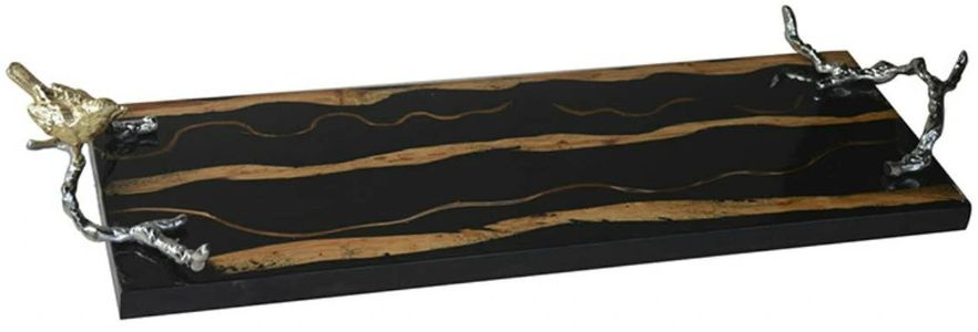 Add instant drama to any decorative arrangement with this dark, artistic, and expressive tray from the Alvada Collection. This piece is crafted from Liliana wood with a contrasting black resin fill, striking a powerful sense of contrast that immediately draws the eye.Read More