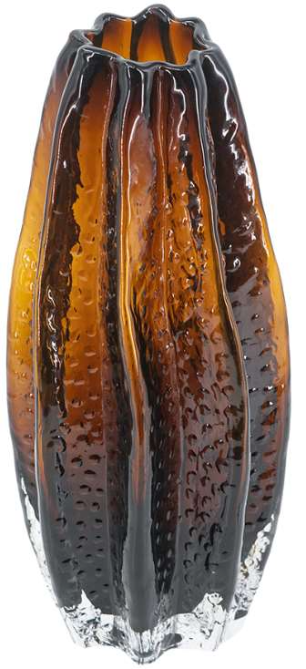 Drawing inspiration from the artistry of nature, this glass vase is crafted in the image of a hanging starfruit, complete with a textured surface and warm amber finish. Display it as a lone accent piece, as part of a stylish vignette, or as the vessel for a small collection of flowers.Read More