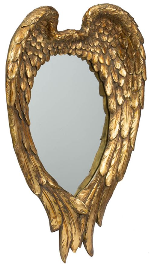 With its gleaming finish and elegant shape, the antique gold angel wing mirror makes a beautiful addition to any space. Add this striking mirror to a sweeping foyer, grand living room, or opulent master bedroom to create a lavish and inspiring effect.Read More