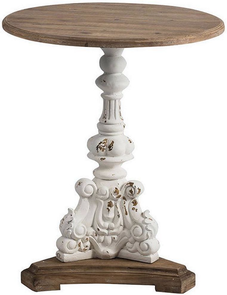 Made with fir wood and displaying a natural wood finish, the antique white 26" round side table is a unique spin on the traditional round table. The carved pedestal base features classic – elegant flowers with exciting detail.Read More
