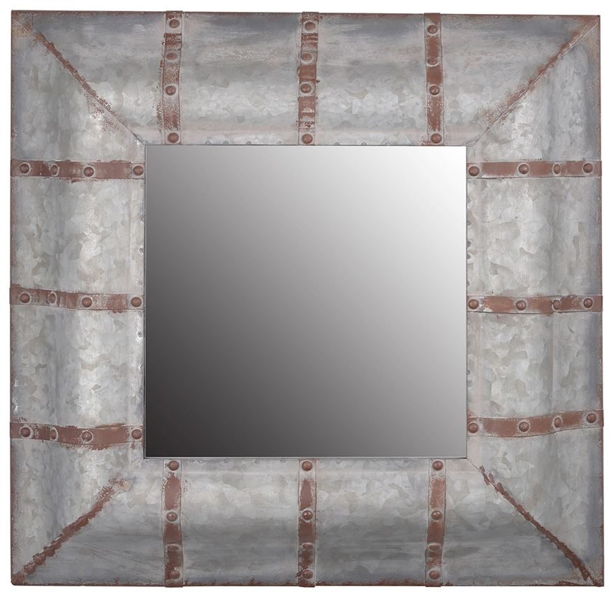 Ruggedly industrial, unabashedly rustic the Baldwin Mirror is a statement piece for those with a bold sense of style. The wide decorative frame is crafted from galvanized metal, striped with riveted bands in a weathered rusty finish. This piece measures 20" on each side for easy placement anywhere in the home.Read More