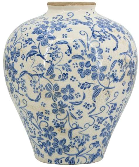 The beige flower Vase adorned with a blue floral pattern stands as a delicate fusion of earthy tones and vibrant artistry. Its classic form, embellished with cobalt blooms, brings a touch of nature's serenity indoors. This Flower vase is not just a container for flowers, but a canvas of botanical beauty.Read More