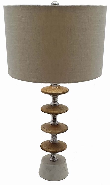 This wood pebble table lamp is centered on a funky throwback look that includes a series of wood discs mounted on an elegant ever-so-thin frame with a white marble base.Read More