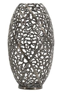 This aluminum coral round barrel vase is a small smoke black accent vase that draws influence from nature to create a cool, modern look. Framed in metal with a cutaway motif, its gentle round shape and barrel design make it a standout addition to bookshelves, tabletops, wall-mounted shelves, and more.Read More