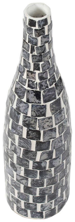 A pearl black and white mosaic pattern adorns this bottle vase. Complete with a small neck that enhances the modern appeal of this piece, the texture and unexpected pattern of this vase will lend stunning visual appeal to a modern home.Read More
