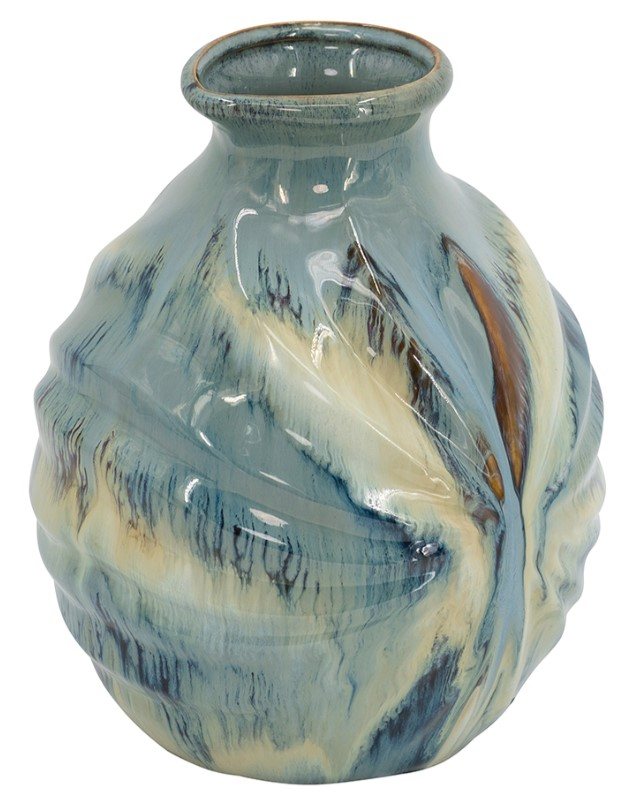 Crafted from 100% high quality ceramic and sporting an organic reactive glaze finish, this vase boasts an intriguing blend of blue and white colors across the curved surface. Perfect for use as a standalone decorative accent or as a vessel for a custom floral arrangement.Read More