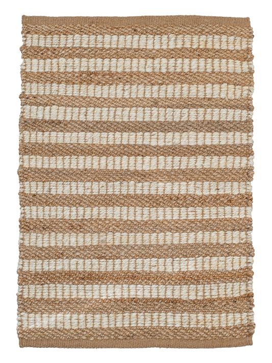 With its stripe pattern and impressive texturing, this jute carpet with a shuttle weave and fringes presents a simple but striking aesthetic. The 100% jute durrie is multicolored and durable, with a stripe design that complements its geometry.Read More