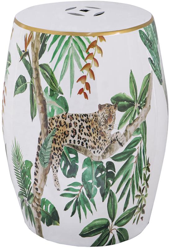 Lively artwork gives this jungle-themed ceramic stool upbeat vibes to go with its useful design. The cheetah and jungle graphics play into the natural, bohemian feel. Used as either a stool or an end table, this piece brings effective decoration to any family room, living room, or bedroom.Read More