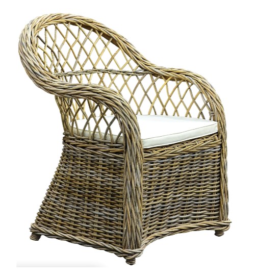 Rest in comfort and coastal style in the Nassau wicker chair. Made of natural rattan on a classically styled frame and finished in a gray wash, this chair features a white twill-covered cushion.Read More