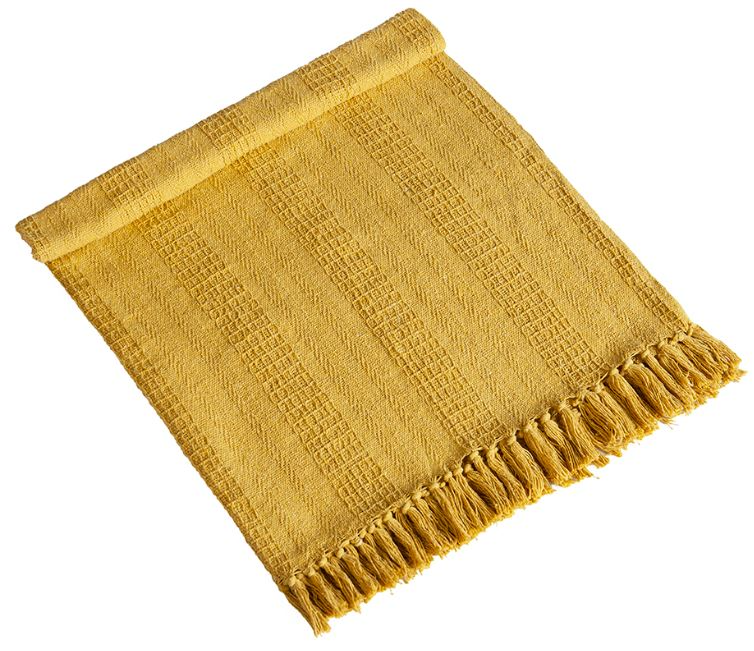 Yellow throw blanket with tassels