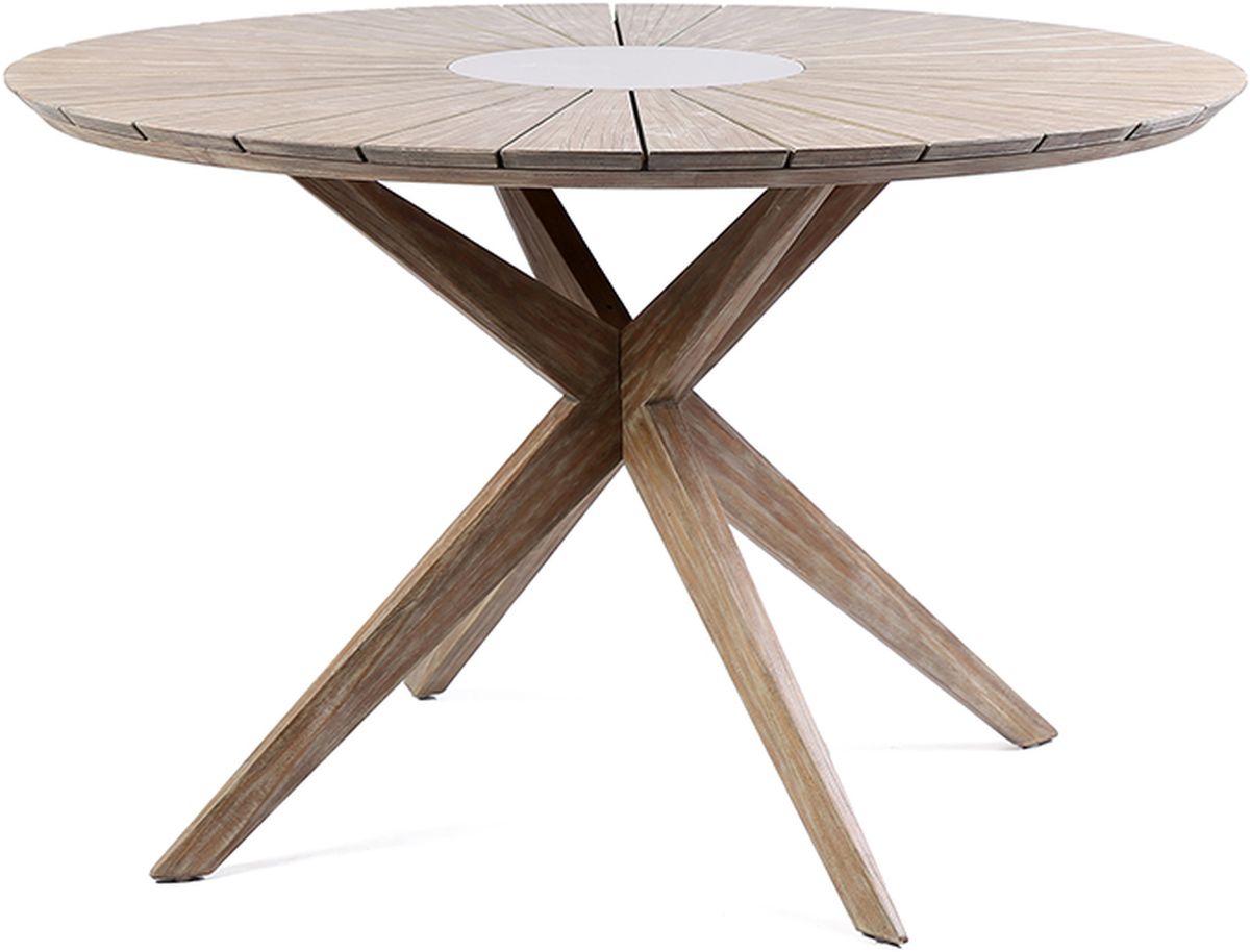 Oasis Outdoor Patio Dining Table with Grey Superstone Center an Light Wood Top