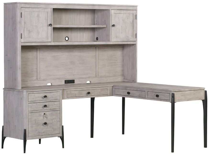The contrast between the lightly textured parchment finish and matte black metal hardware provides a clean, contemporary look and timeless style. Cleverly scaled and full of functional features such as power outlets, USB ports and drop front drawers. Modular pieces can be configured to meet the unique needs of space and utility.Read More