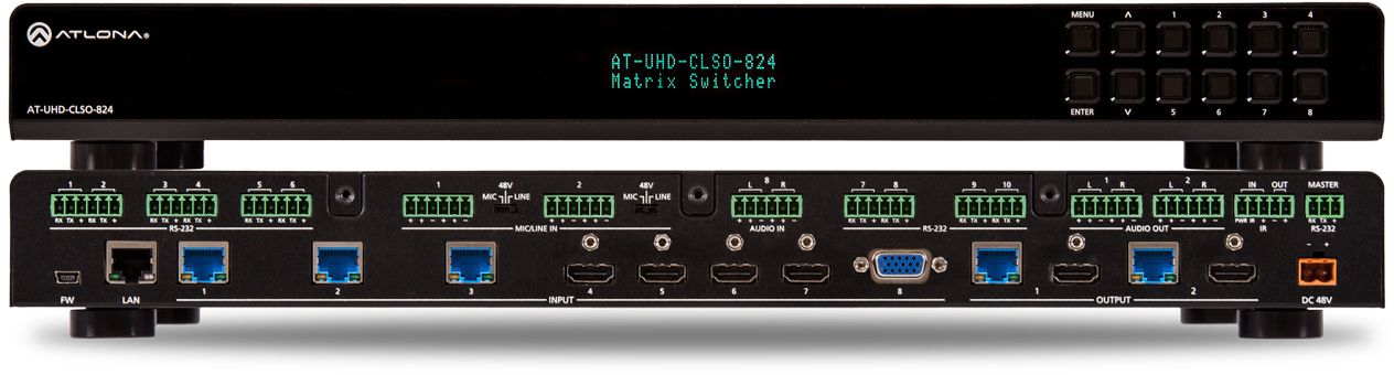 The AT-UHD-CLSO-824 features HDBaseT inputs and outputs, and is compatible with Atlona UHD-EX and HDVS-200 Series transmitters and receivers.