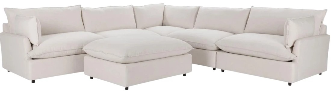 The Caplan Dawn Flax 6-Piece Sectional offers luxurious comfort and endless versatility. Designed with deep seating and generously filled with feather and down, it provides an ultra-cozy lounging experience. Upholstered in soft, durable fabric, combines modern style with plush comfort, making it ideal for both entertaining and everyday relaxation.Read More