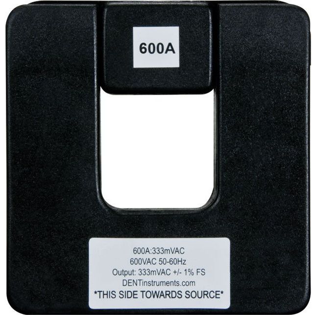 The GLS-EM-CT is a current transformer designed for use with a GLS-EM-MCU Crestron Green Light® Power Meter Control Unit[1]. Current transformers are vital to metering power. Crestron® offers various split core models that work with 600, 400, and 200 Amp feeds; these devices clamp around main feeds. Solid-core models exist for 50 and 20 Amp circuits; the wire must be routed through the closed loop of the core.