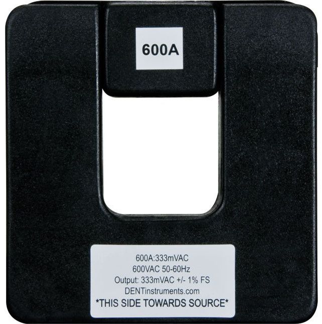 The GLS-EM-CT is a current transformer designed for use with a GLS-EM-MCU Crestron Green Light® Power Meter Control Unit[1]. Current transformers are vital to metering power. Crestron® offers various split core models that work with 600, 400, and 200 Amp feeds; these devices clamp around main feeds. Solid-core models exist for 50 and 20 Amp circuits; the wire must be routed through the closed loop of the core.