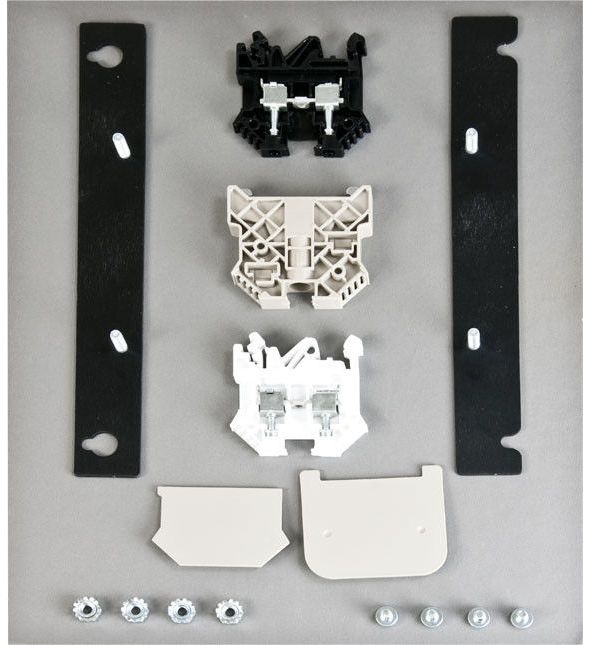 The CAEN-MK is the mounting kit required to mount (1) C2N-SPWS300 Cresnet power supply or (1) C2N-NPA8 Cresnet network poll accelerator into a CAEN or CAENIB automation enclosure. Using the CAEN-MK, either component occupies 1 module space in a single-width CAEN enclosure, or 2 side-by-side module spaces in a double-width CAEN enclosure. The complete kit includes all DIN rail terminal block components required to terminate the device's 120VAC power cable.