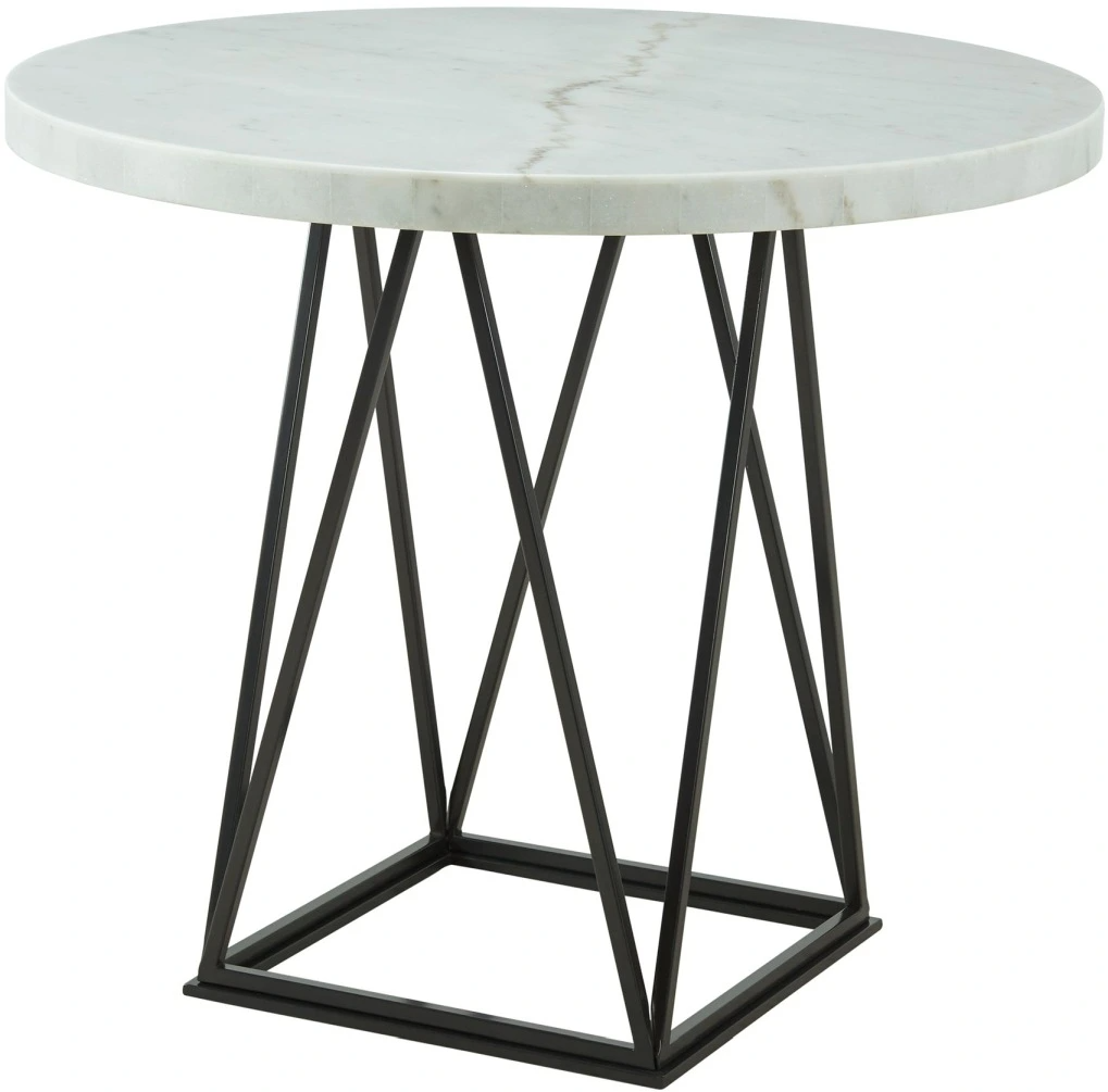 This table is a beautiful piece for your dining room. The rounded shape of the white, marble table top, sleek, clean lines, and square pedestal base is an attractive mix. The veining in the marble will slightly differ with each cut but makes this piece so unique. Pair this table with counter height side chairs for a complete look!Read More
