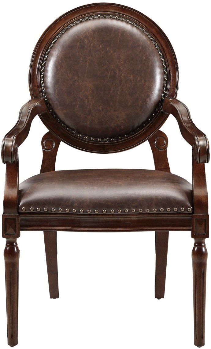 The classical styling of the Aldermont Collection will serve as a timeless statement of your preference for traditional design. The brown finish that graces the wood framing is a perfect complement to the faux leather of the chair’s seat and back, as well as the nailhead accent that defines both.