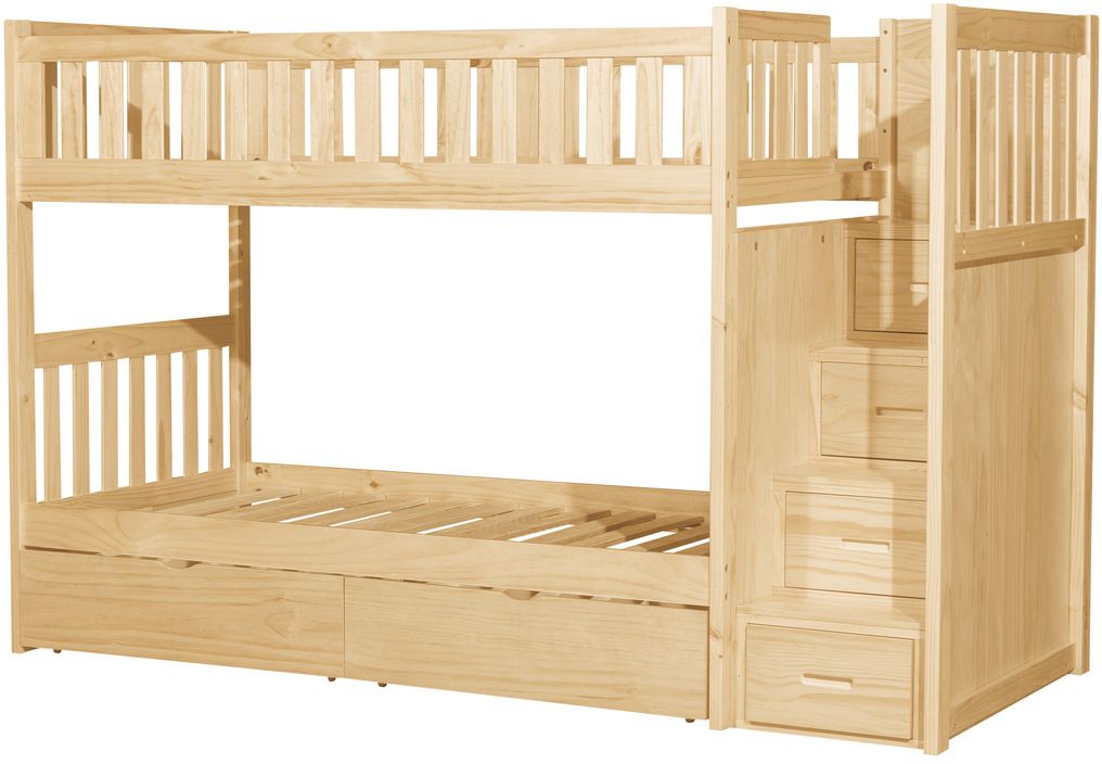 Maximizing sleep space is achieved with the stylish Bartly Collection. This transitional twin over twin reversible storage stairstep bunkbed is featured in a natural pine finish making it an appropriate choice for a number of youth bedroom settings.Read More