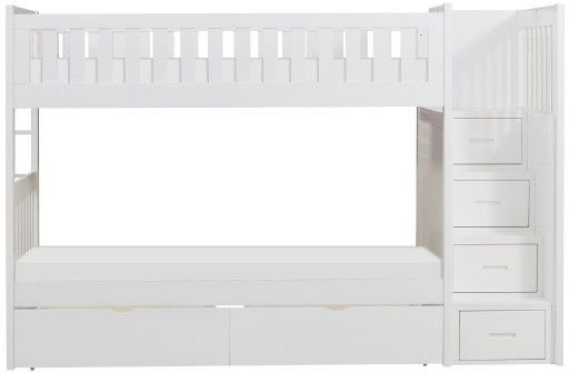 Maximizing sleep space is achieved with the stylish Galen Collection. This transitional twin over twin reversible storage stairstep bunkbed is featured in a white finish making it an appropriate choice for a number of youth bedroom settings.Read More