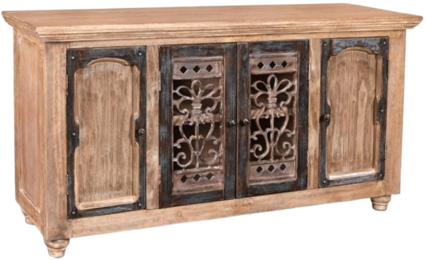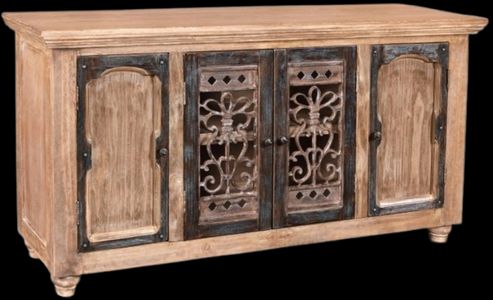 Crafted from pine solids and veneers, this Mandalay console features wire-brushed surfaces for a timeworn, weathered appeal. A multi-step lacquer finish enhances its depth and durability, while cast metal door fronts add a bold, stylish accent.Read More