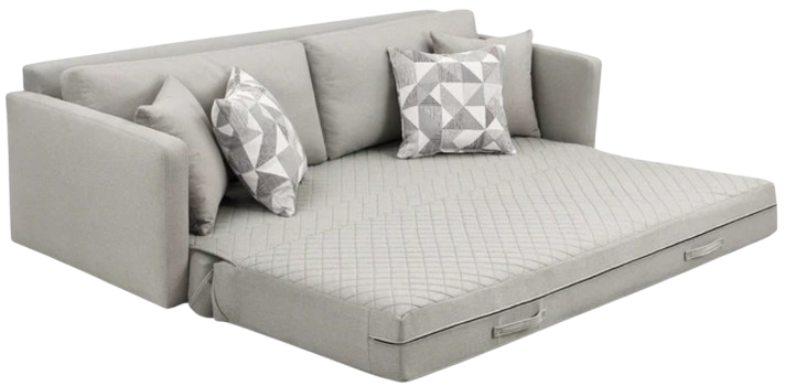 Enhance your living space with the Bishop Grey Convertible Sofa, a sleek and modern choice for any home. Perfect for compact areas, this sofa effortlessly transforms into a 60x80" queen-size sleeper with a quilted memory foam mattress. It features reversible back cushions and comes with four stylish throw pillows.Read More