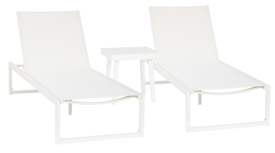 Create your own outdoor oasis with this chic 3-piece lounge set in all white. Featuring two sleek chaise lounges and a matching side table, this ensemble combines modern elegance with practical functionality. The rust-resistant aluminum frames and breathable, quick-drying fabric deliver durability and comfort, no matter the weather.Read More
