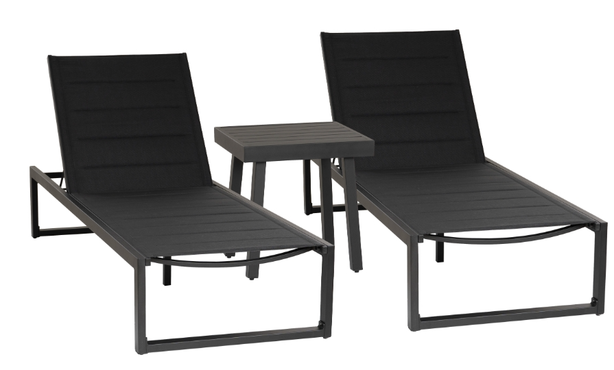 Create your own outdoor oasis with this chic 3-piece lounge set in all black. Featuring two sleek chaise lounges and a matching side table, this ensemble combines modern elegance with practical functionality. The rust-resistant aluminum frames and breathable, quick-drying fabric deliver durability and comfort, no matter the weather.Read More