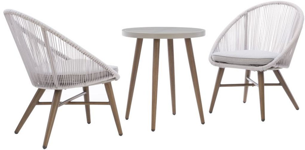 Enjoy long, relaxing conversations with a friend in this modern take on the bistro set. Hand woven with all the right outdoor materials, yet you will want entertain with it indoors as well. Airy rope design for the chairs in subtle grey stands alone or can welcome a accent pillow to tie the space together.Read More