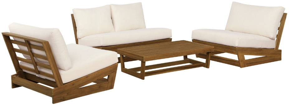 Discover relaxation and style with our 4 Piece Outdoor Conversation Set. Immerse yourself in the warmth and durability of the teak oil stained wood frame. The plush white fabric cushions, crafted from 100% polyester, invite you to sink into luxurious comfort.Read More