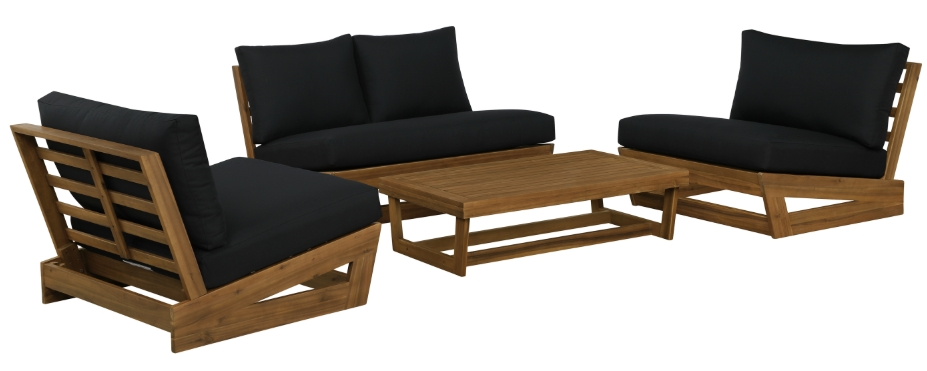 Discover relaxation and style with our 4 Piece Outdoor Conversation Set. Immerse yourself in the warmth and durability of the teak oil stained wood frame. The plush black fabric cushions, crafted from 100% polyester, invite you to sink into luxurious comfort.Read More