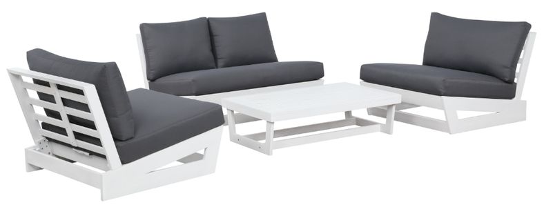 Indulge in relaxation and style with our 4 Piece Outdoor Conversation Set. Embrace the durability and warmth of the white painted teak wood frame. Luxuriate in the plush grey fabric cushions, crafted from 100% polyester, inviting you to unwind in lavish comfort.Read More