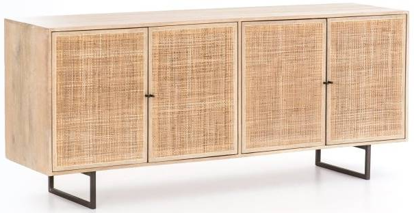 An organic twist on mid-century style, the Cameron Sideboard features clean lines, a lofted metal frame, and natural textures. Light, woven cane is surrounded by black mango casing and supported by gunmetal-finished iron legs for a high-contrast look with natural depth. Available in two colors.Read More
