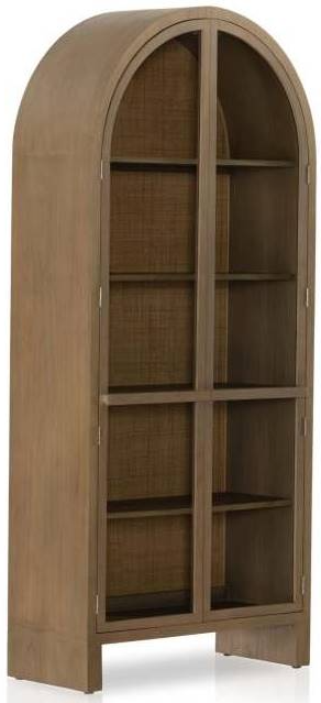 An elegant arched silhouette gives our Clea Cabinet a dramatic appeal. Crafted from burnished solid mindi with spacious interior shelves and a glass front, it will beautifully display your most treasured pieces.Read More