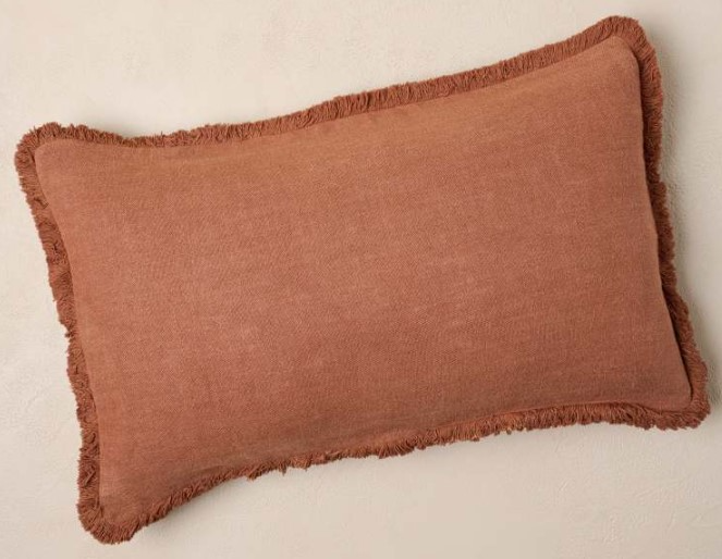 The Saddle Linen Oversized Pillow features light fabric, subtle texture, and a soft fringed border. Shaping up to a substantial square, it tops off a bed, sofa, or chair with optimal comfort and form.Read More