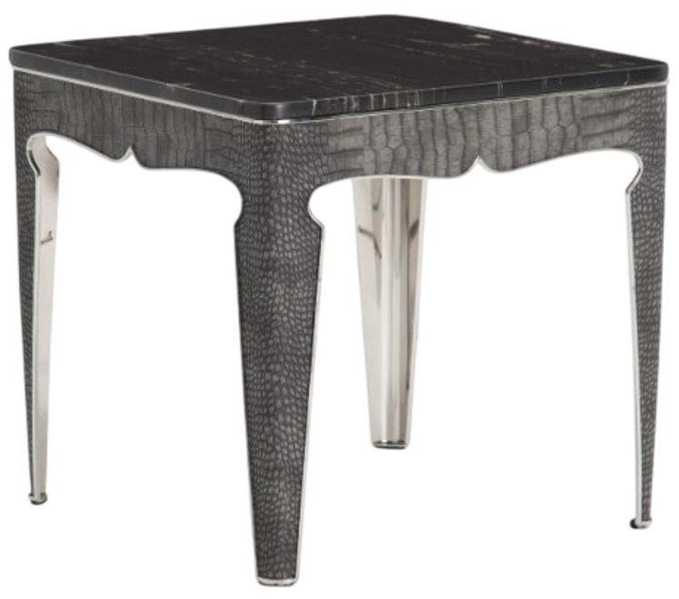 The Michael Amini® Carson Black End Table with Gray Legs offers a modern yet versatile design. The sleek black tabletop pairs beautifully with the contrasting gray legs, creating a sophisticated and stylish look. This end table is perfect for adding functional storage and contemporary flair to any living space.Read More
