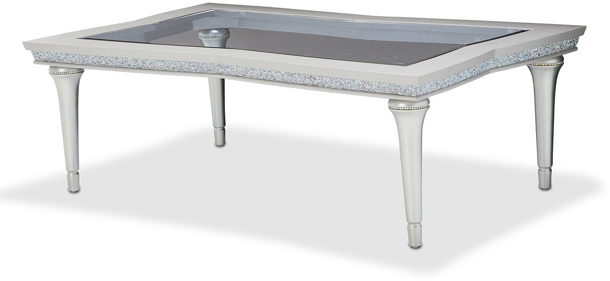 Cocktail tables should never be an afterthought. Instead, polish your Glam living room like Hollywood professional with the Melrose Plaza™ Cocktail Table, and watch your home light up! With a diamond-bright crystal trim, gleaming platinum finished legs, and a tabletop with the collection's signature wing shape, your home will feel effortlessly chic.