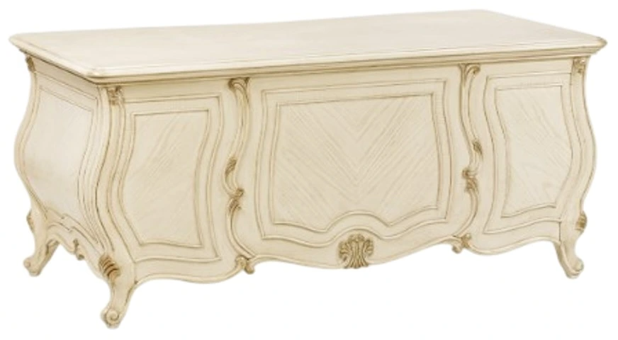 The Michael Amini® Platine De Royale™ Champagne Desk is a luxurious piece that combines French Provincial elegance with modern functionality. Crafted from poplar solids and ash veneers, it features a champagne finish.Read More