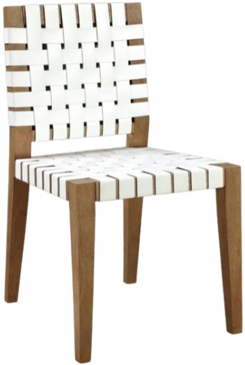 Ergonomically pitched dining chair uses a tight weave to create a supportive seat with a bit of flex for extra comfort