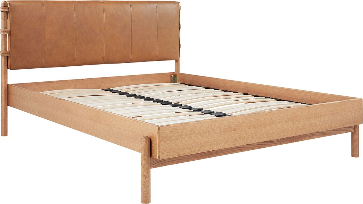 Crafted with a high-quality leather headboard and rounded solid oak legs, the Colby Queen bed frame elegantly brings understated luxury with superb craftsmanship. The soft curves of the leather headboard provide a sense of warmth and coziness, while the rounded legs add a touch of organic form to the overall design.Read More